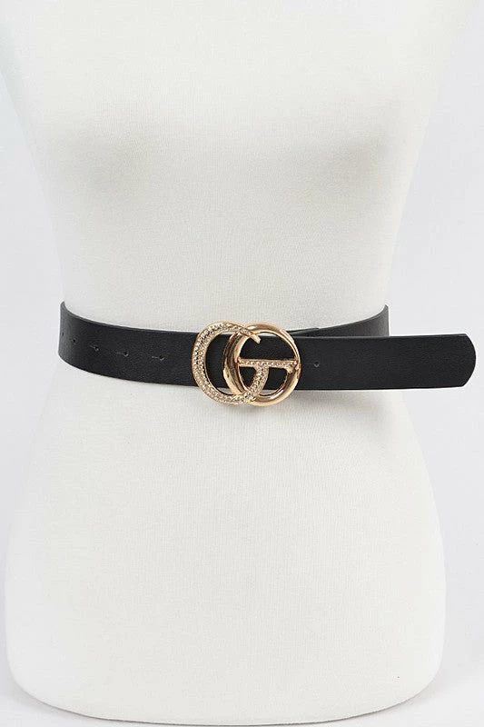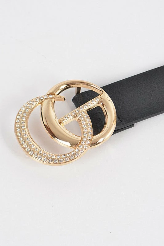 Emprada Accessories Black Rhinestone Double G Buckle Faux Leather Belt