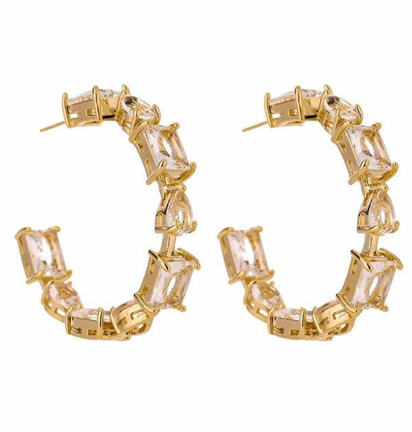 - C Shape Gold Plated Cubic Zirconia Stud Earrings