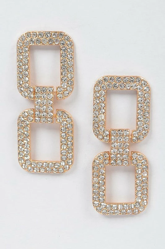 Emprada Accessories Rhinestone Gold Double Square Earring