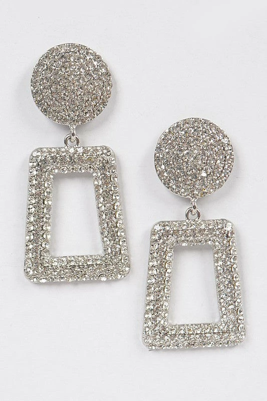 Emprada Accessories Rhinestone Silver Trapezium Back Drop Earring