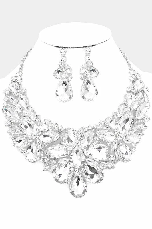 Emprada Accessories Teardrop Crystal Gem Silver Marquise Necklace & Earring Set