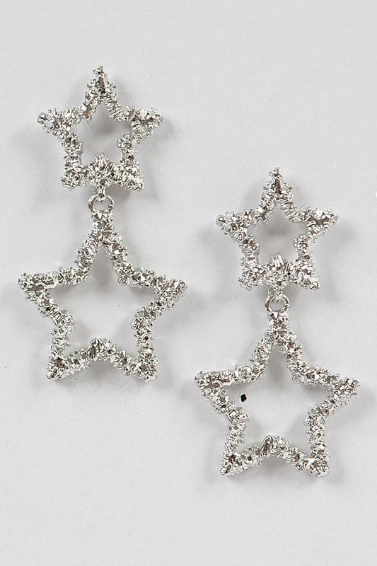 Emprada Accessories Textured Silver Star Dangling Earrings