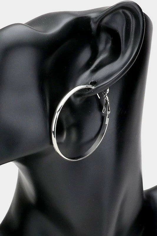 Emprada Accessories White Gold Plated 1.5″ Metal Hoop Earrings