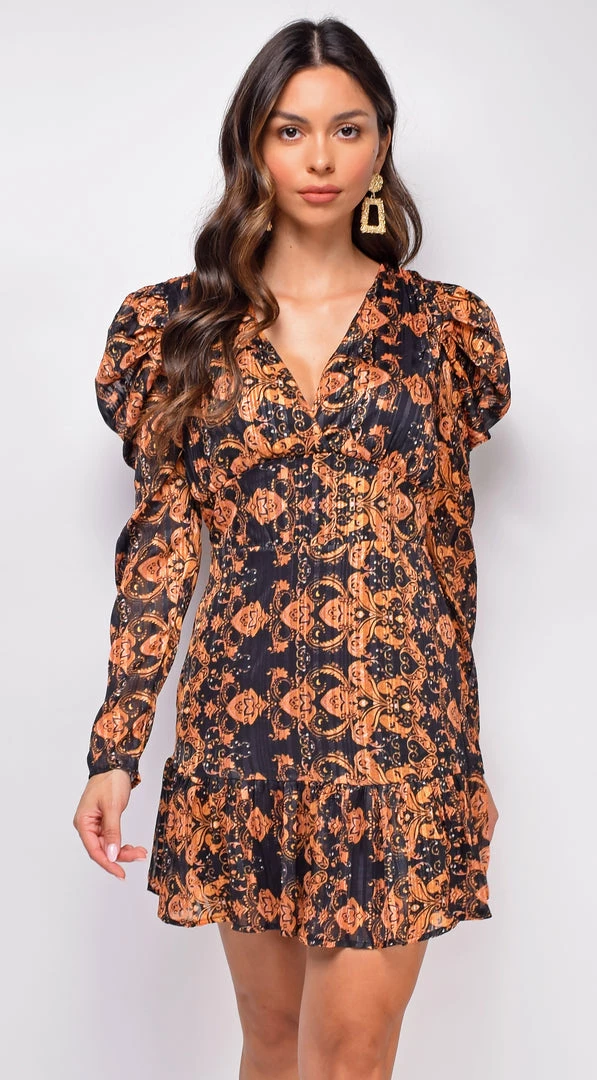 Be the first to review “Emprada Alana Black Gold Print Dress” Cancel reply