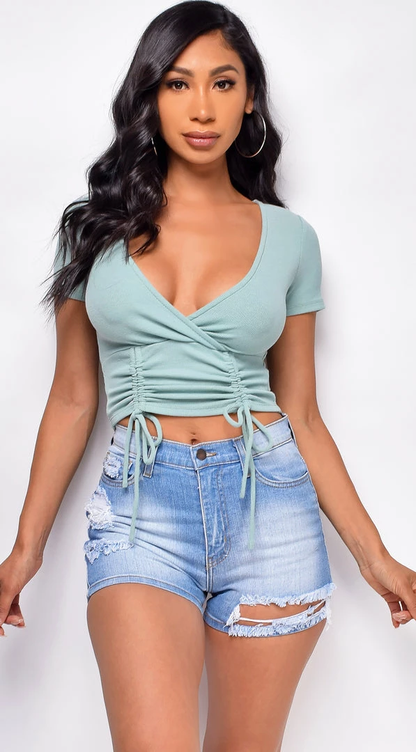 Be the first to review “Emprada Alex Green Surplice Ruched Knit Top” Cancel reply