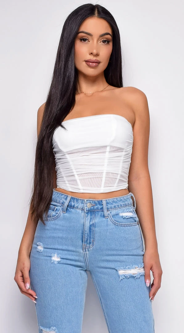 Emprada Araminta White Bandeau Mesh Corset Top Tops