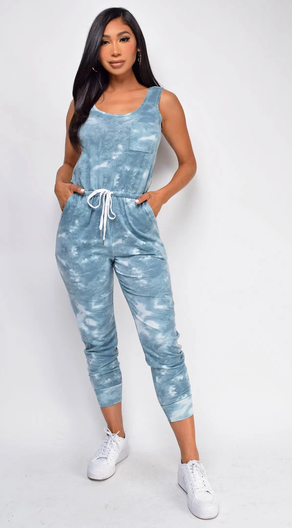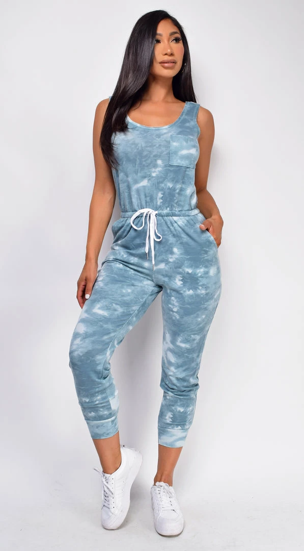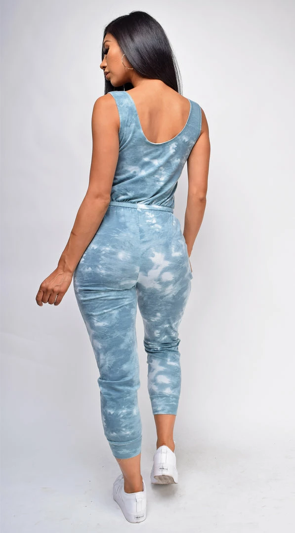 Emprada Austin Teal Blue Tie Dye Jumpsuit