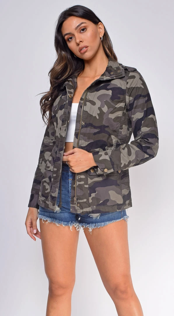 Emprada Bahati Green Camo Print Utility Jacket Outerwear