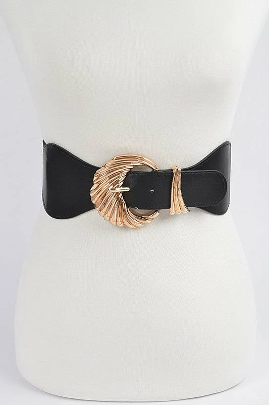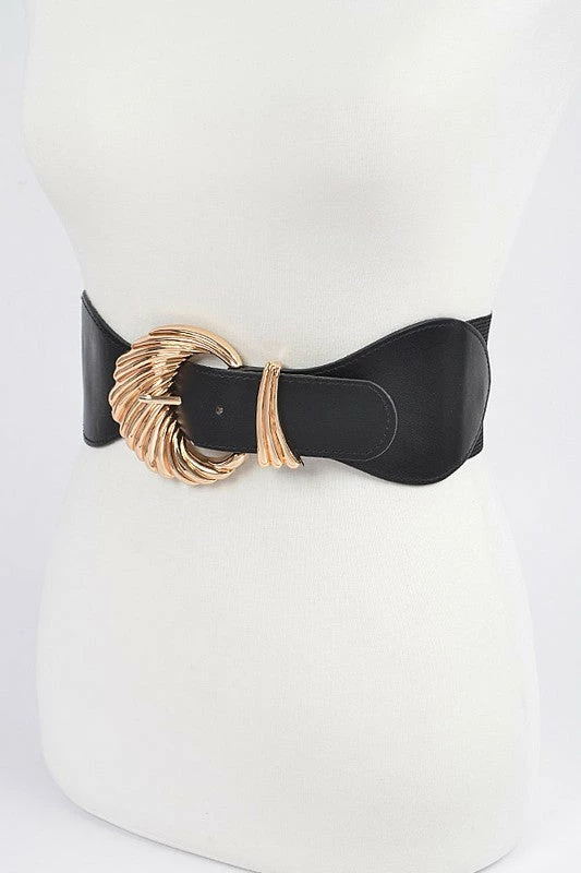 Emprada Black Multi Gold Metal Buckle Wide Elastic Belt