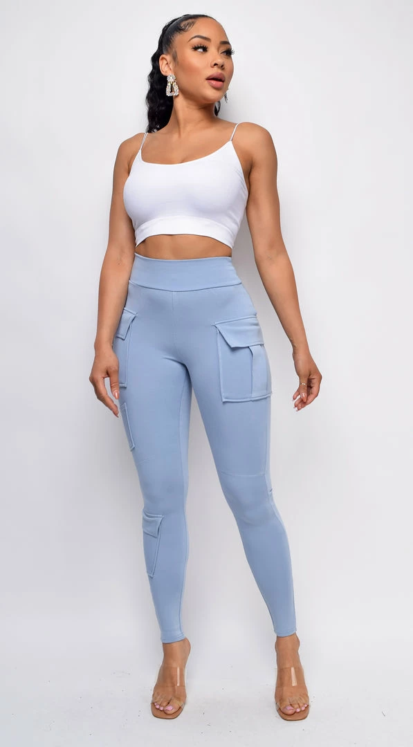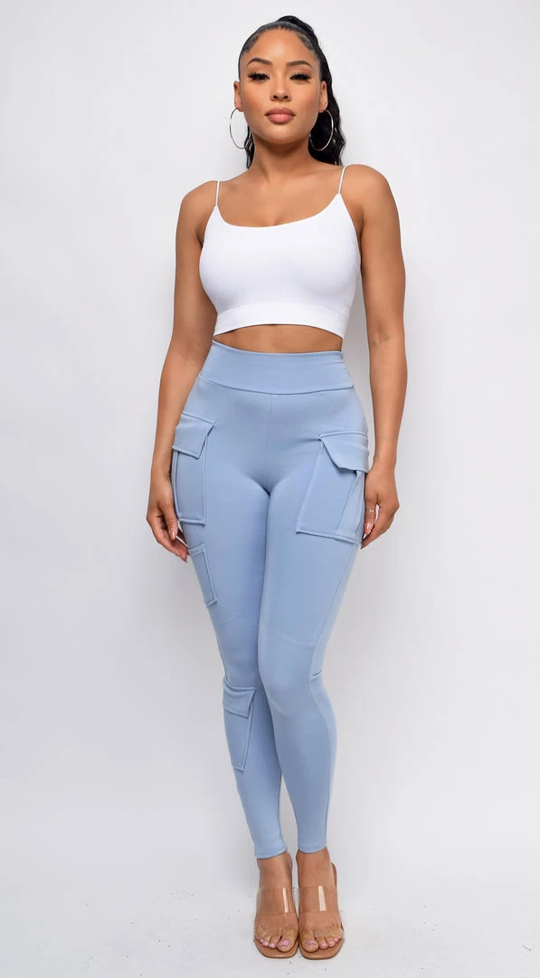 Emprada Bottoms Dia Blue Cargo Pocket Leggings