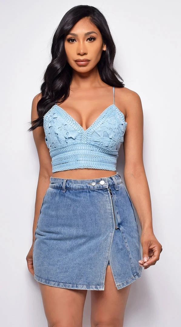 Emprada Bottoms Simmi Blue Zipper Slit Detail Denim Skort