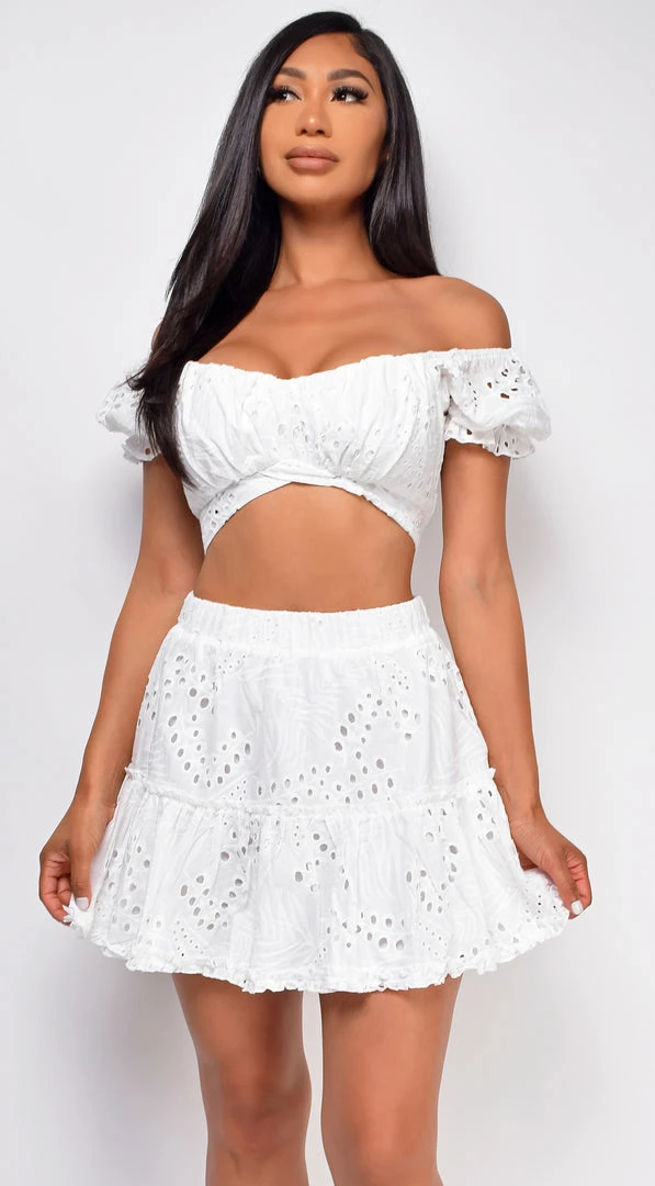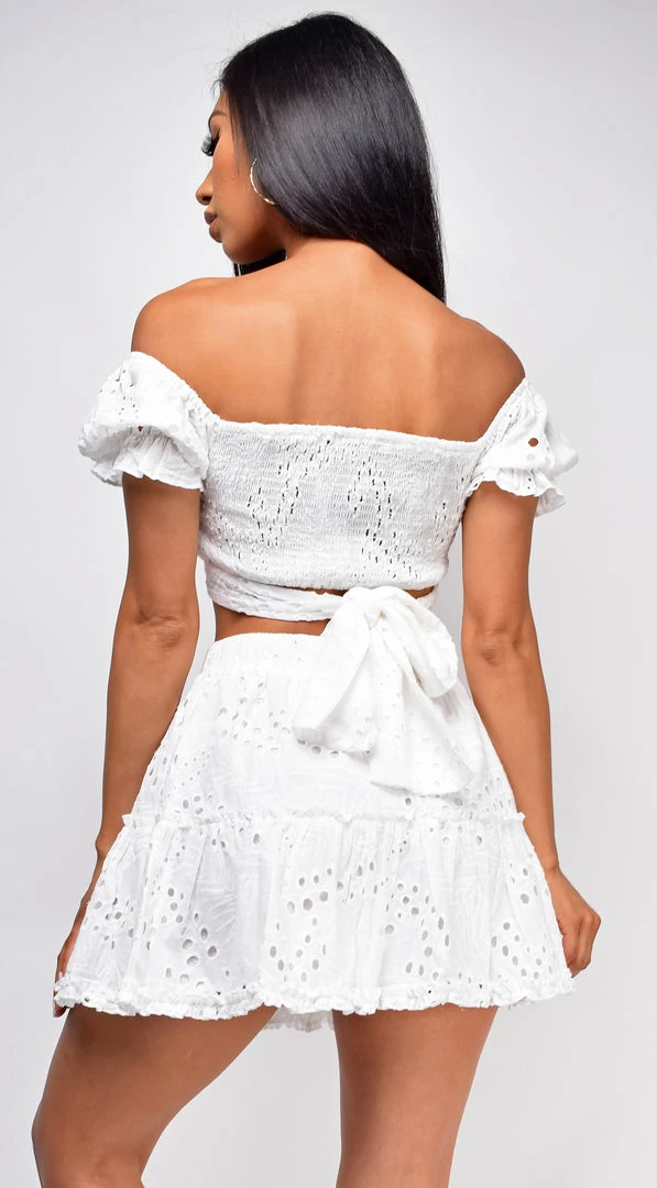 Emprada Bria White Crochet Lace Skirt & Top Set Dresses