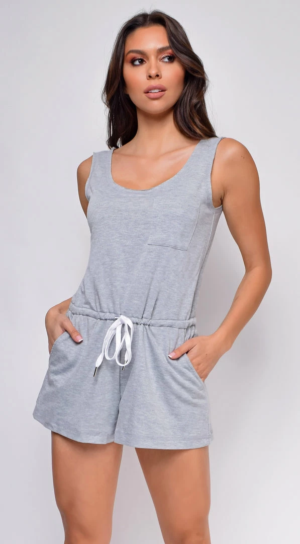 Emprada Chaya Grey Pocket Sleeveless Romper Loungewear