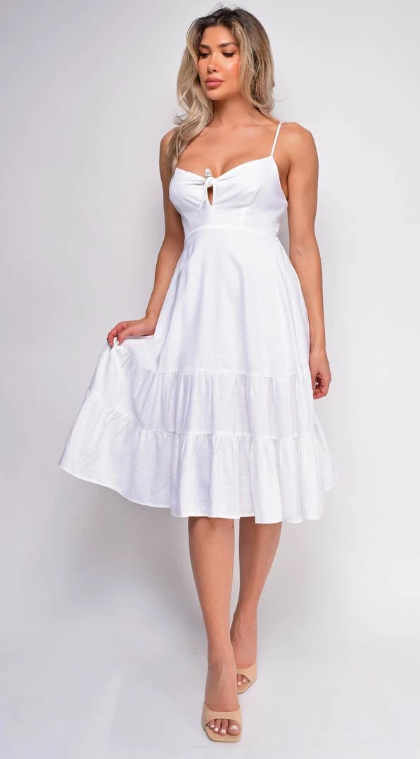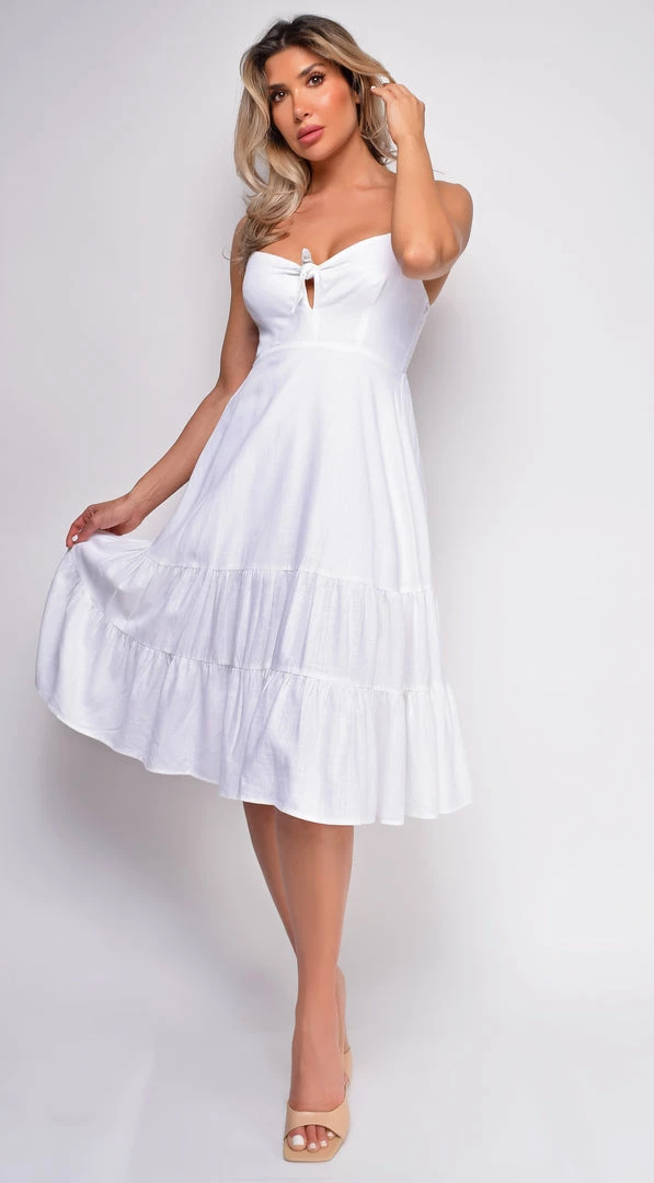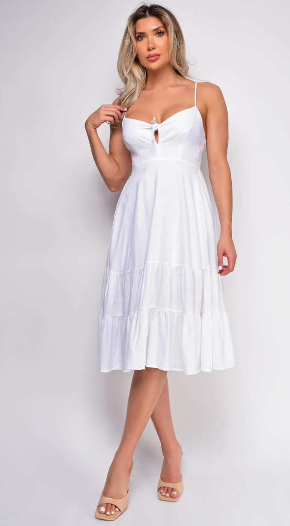 Emprada Dresses Aviva White Front Tie Midi Dress