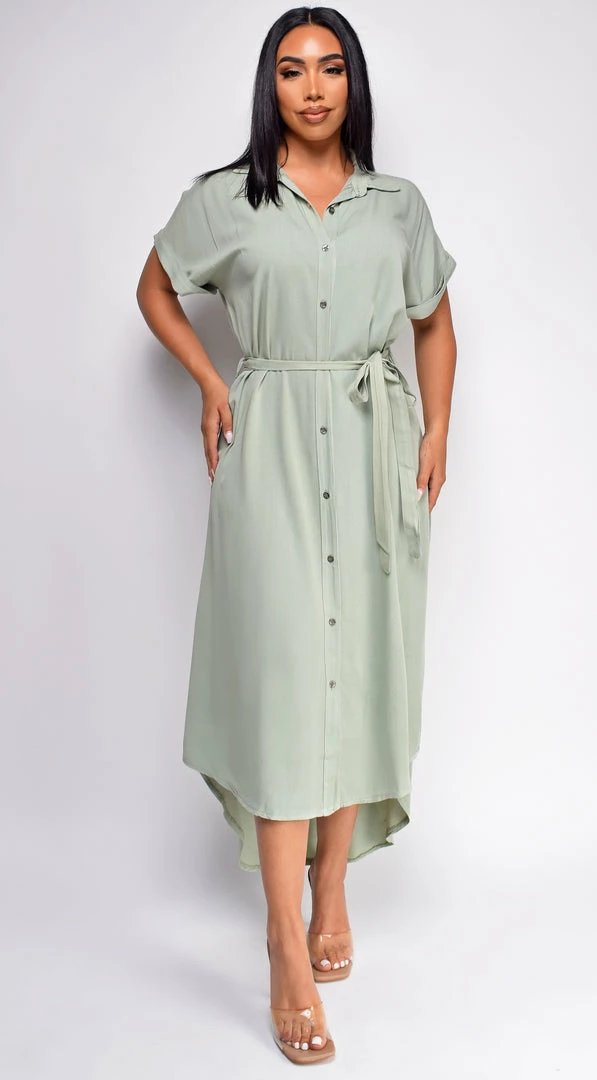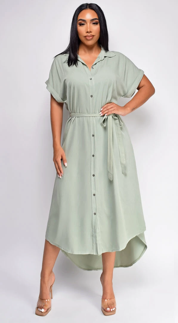 Emprada Dresses Blakely Light Green Button Down Shirt Dress