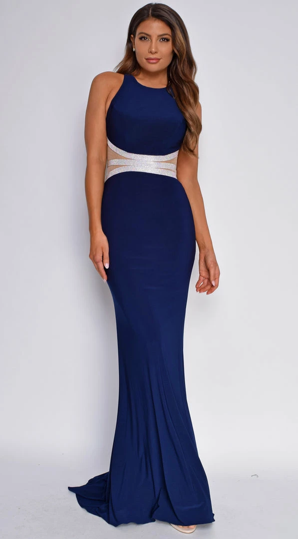 Emprada Dresses Clarice Navy Blue Rhinestone Gown