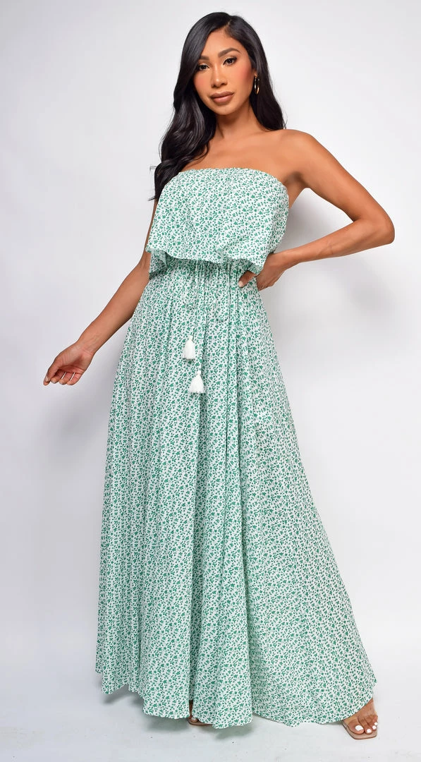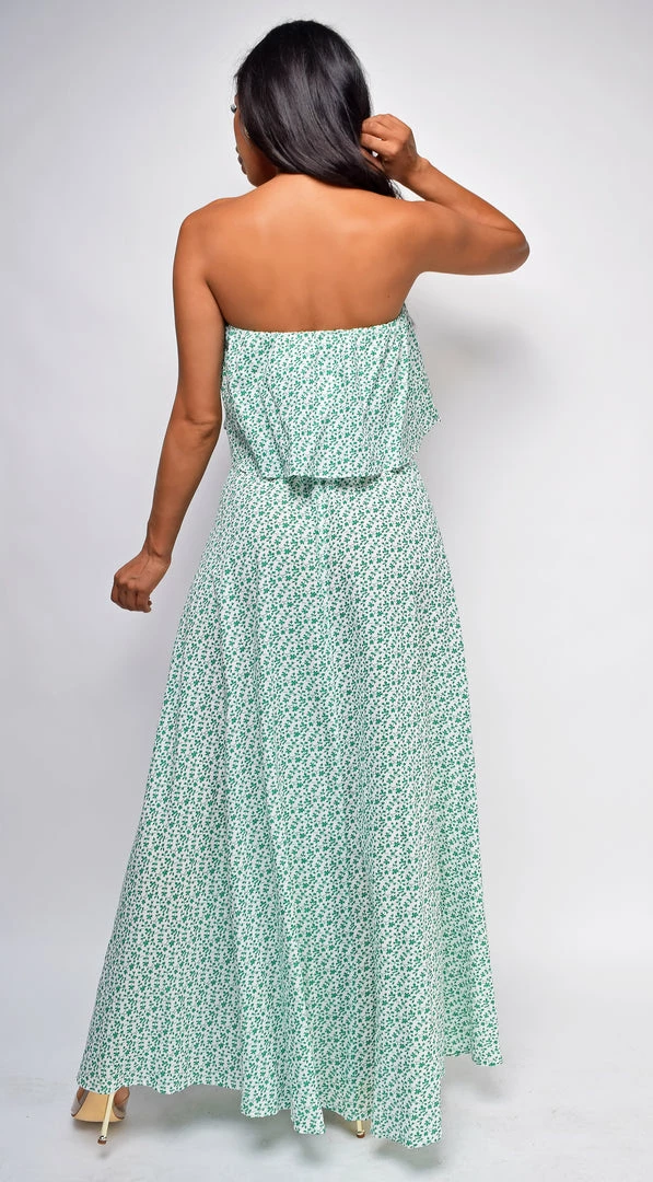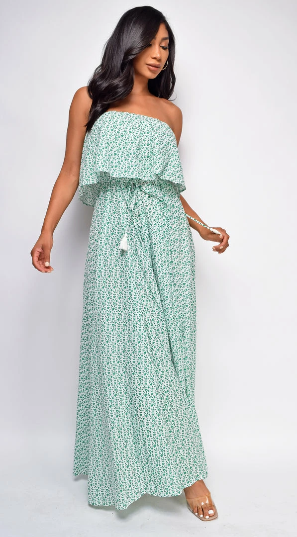 Emprada Dresses Eden Green Floral Tube Sleeveless Side Slit Dress
