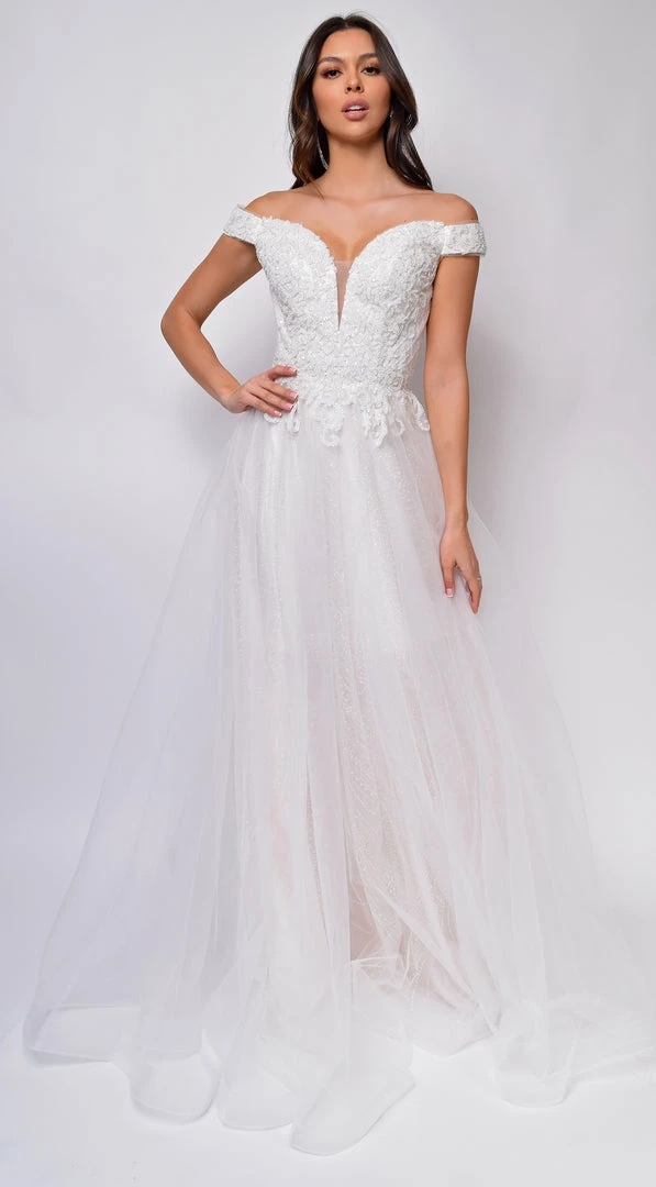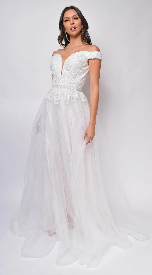 Emprada Dresses Nicole Sweetheart Neckline A-Line Lace Off Shoulder Layered Tulle Skirt Bridal Gown