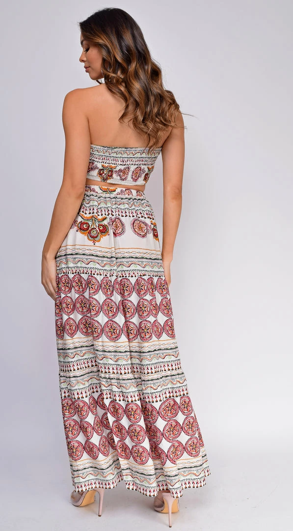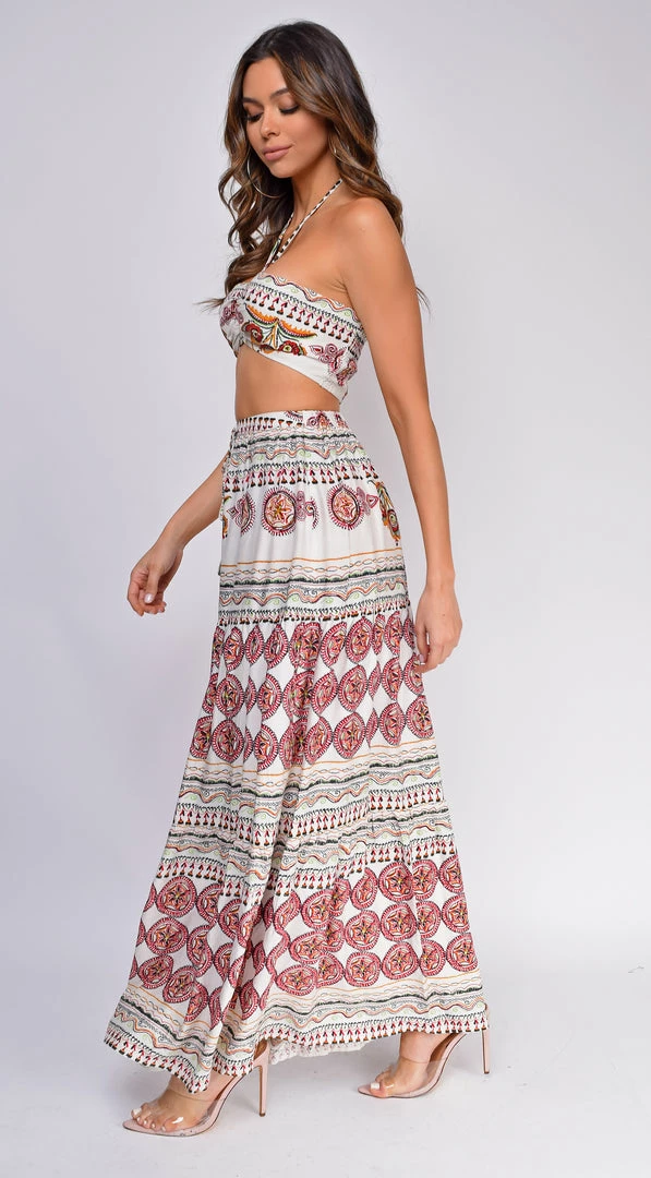 Be the first to review “Emprada Dresses Palm Springs White Boho Print Top And Skirt Set” Cancel reply