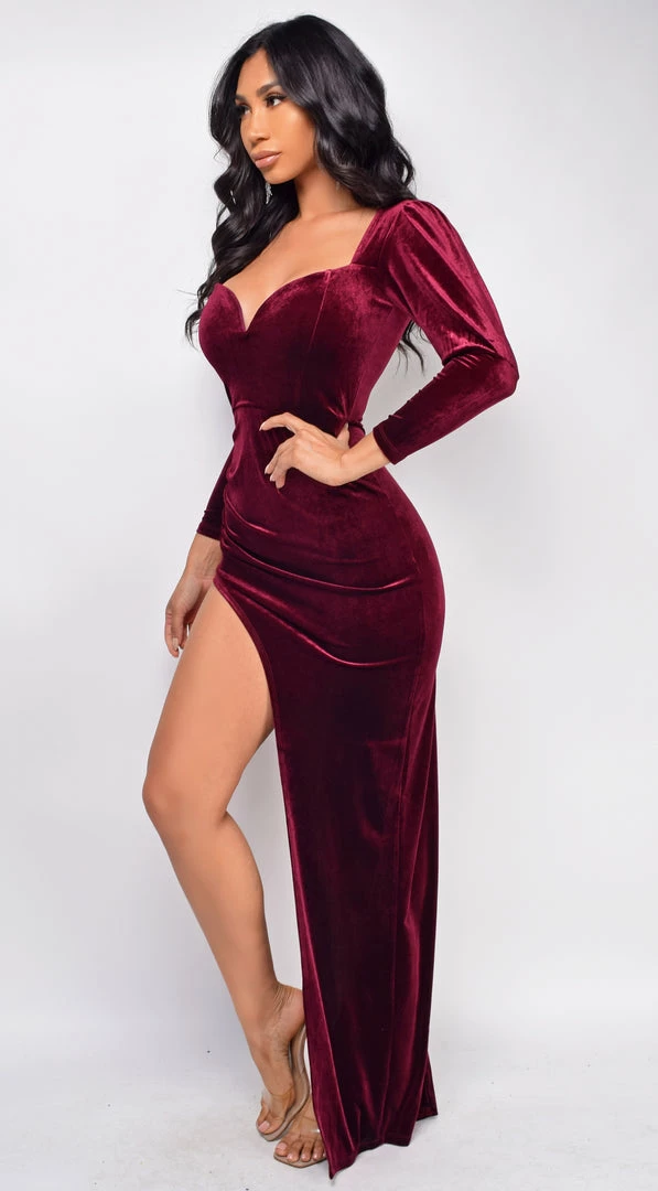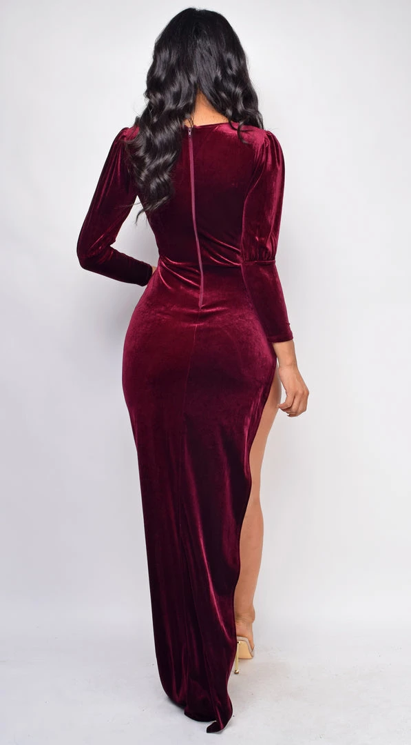 Emprada Dresses Tanya Red Velvet High Slit Gown