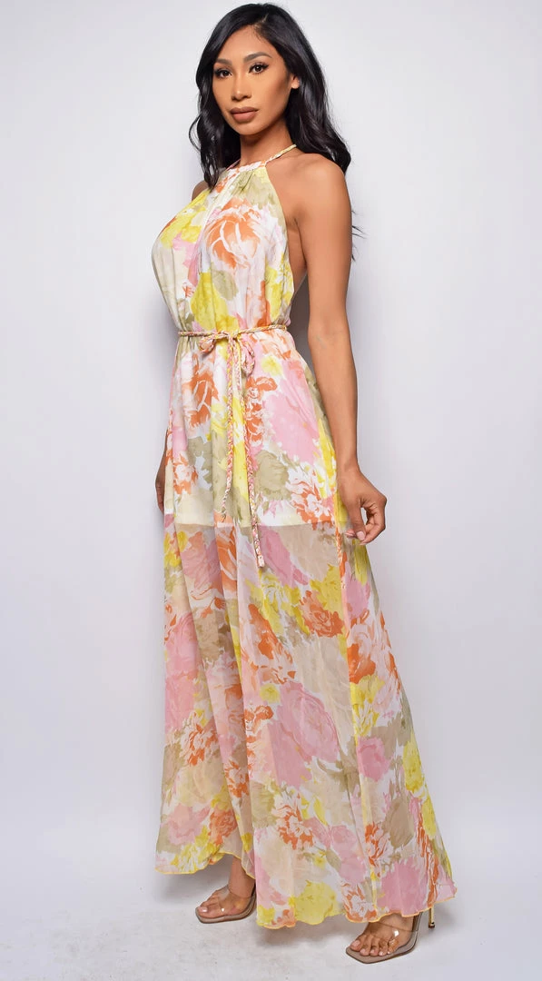 Emprada Dresses Topaz White Yellow Multi Color Floral Print Maxi Dress