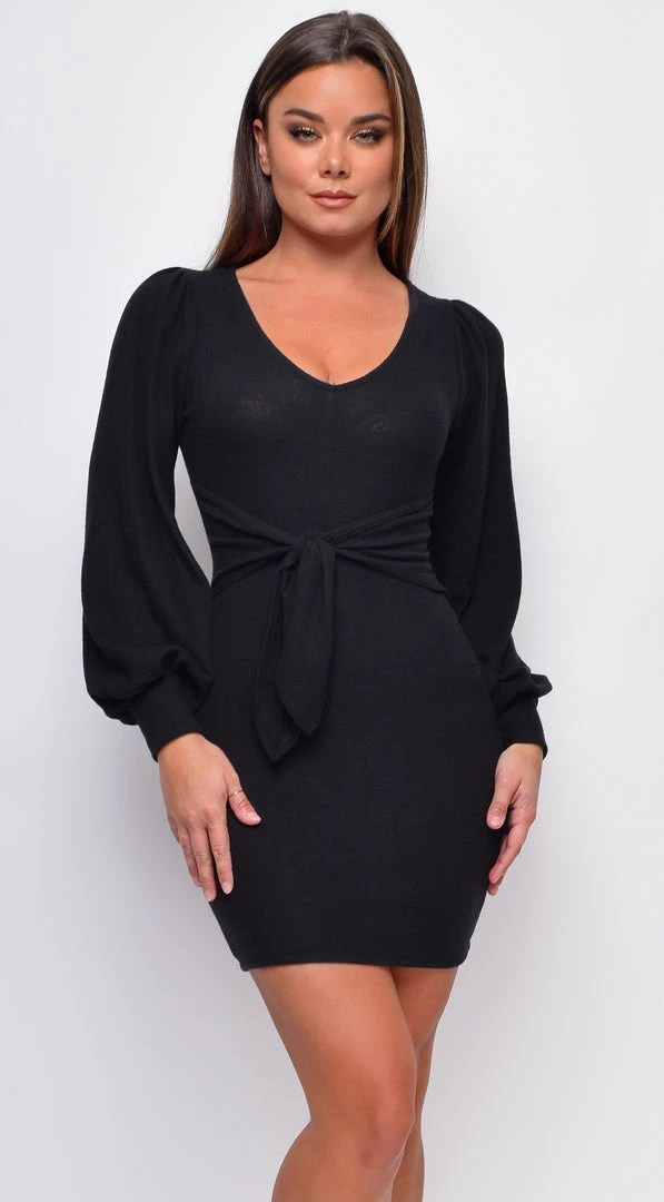 Emprada Dresses Ultimate Black Waist Tie Mini Dress