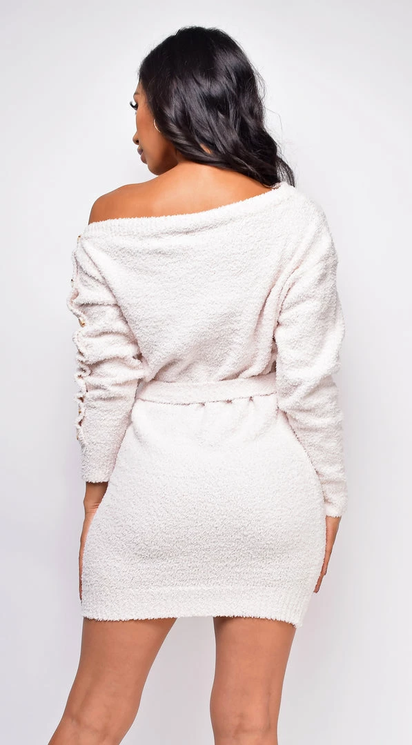 Emprada Dresses Varna Light Beige Off Shoulder Sweater Dress