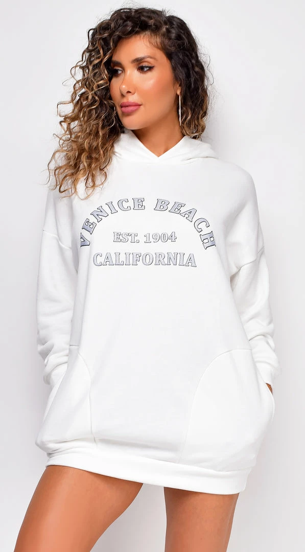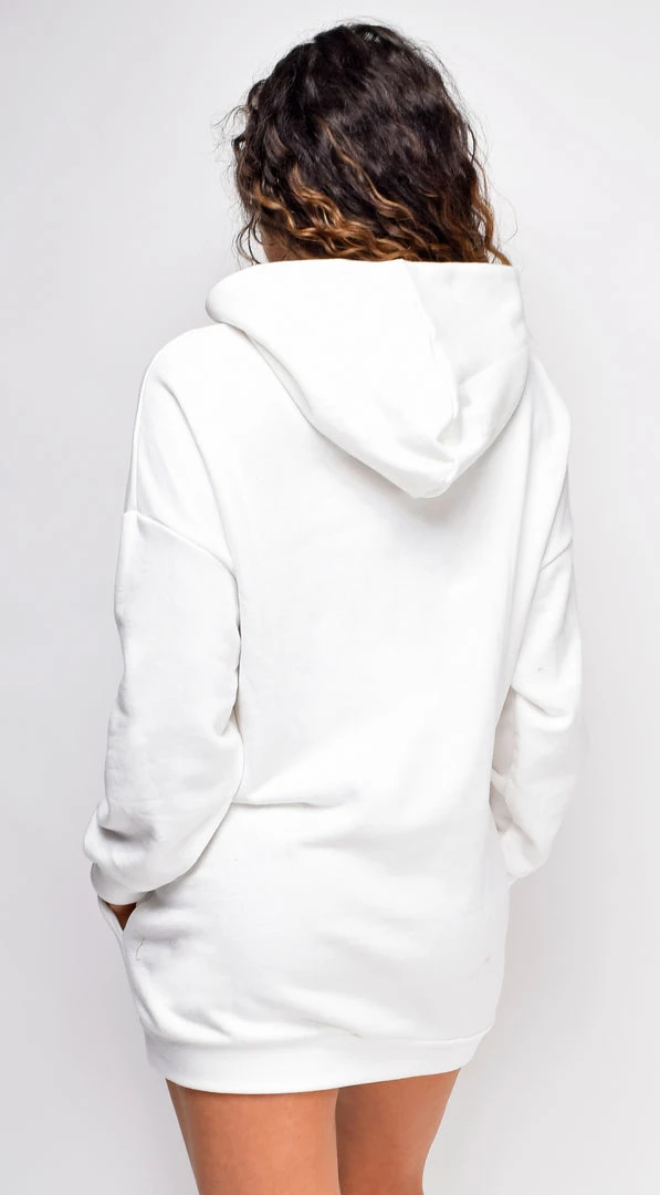 Emprada Dresses Venice Beach White Hoodie Sweater Dress