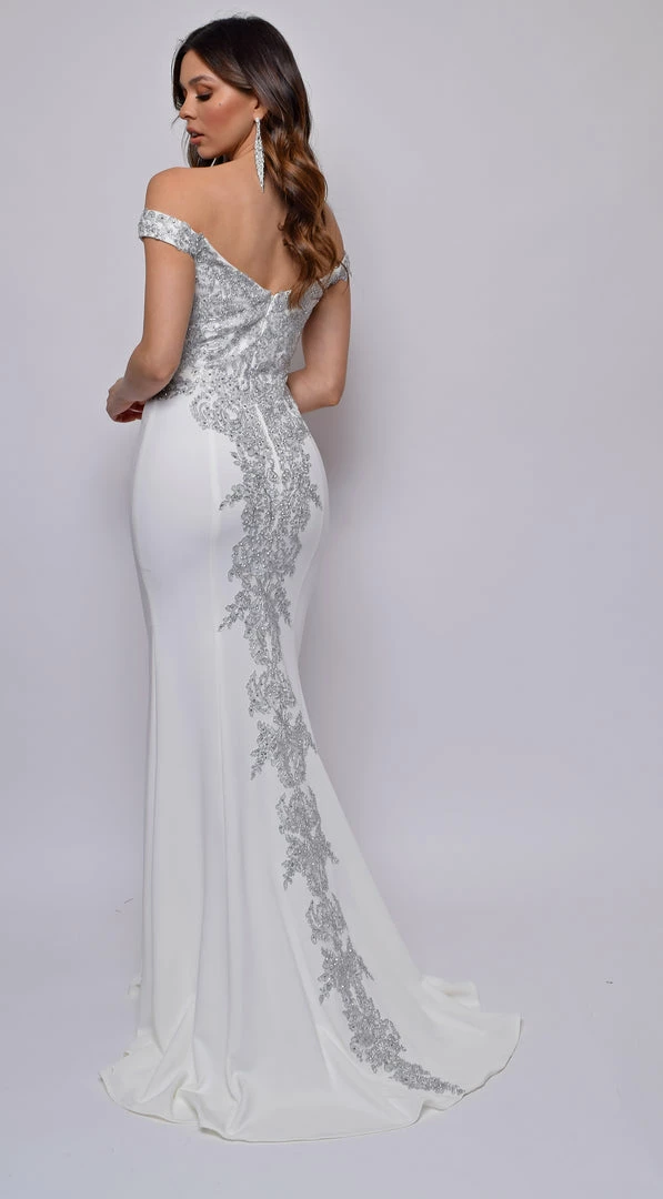 Be the first to review “Emprada Ensley Off White Off Shoulder Silver Lace Detail Gown” Cancel reply