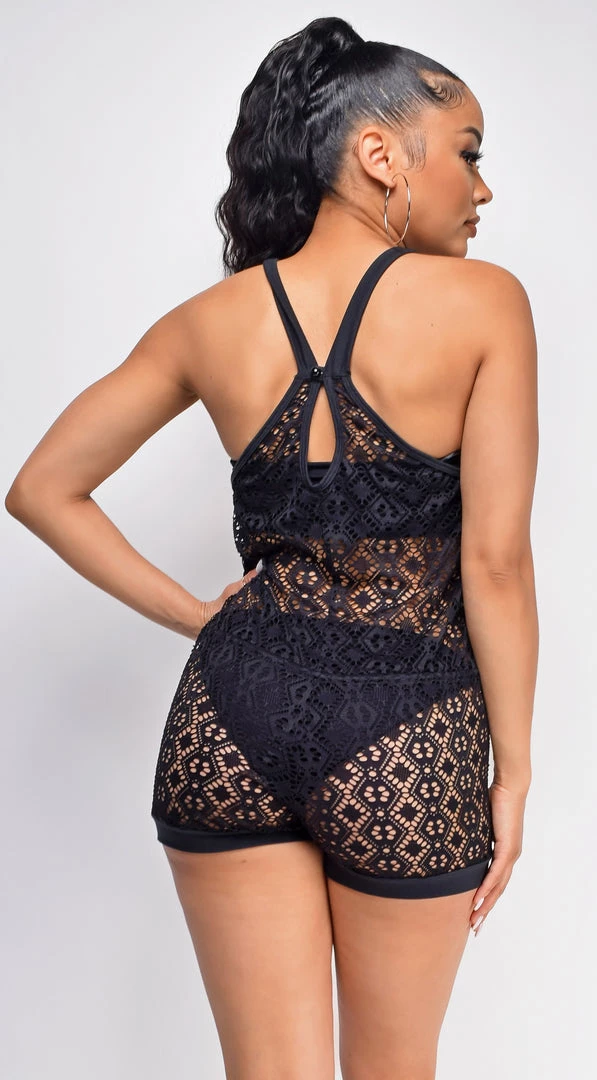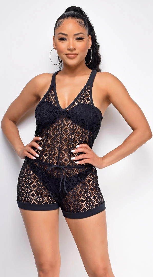Emprada Free Spirit Black Crochet Lace Romper Cover Up