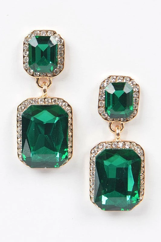 Emprada Green Emerald Stone Dangling Earrings Accessories