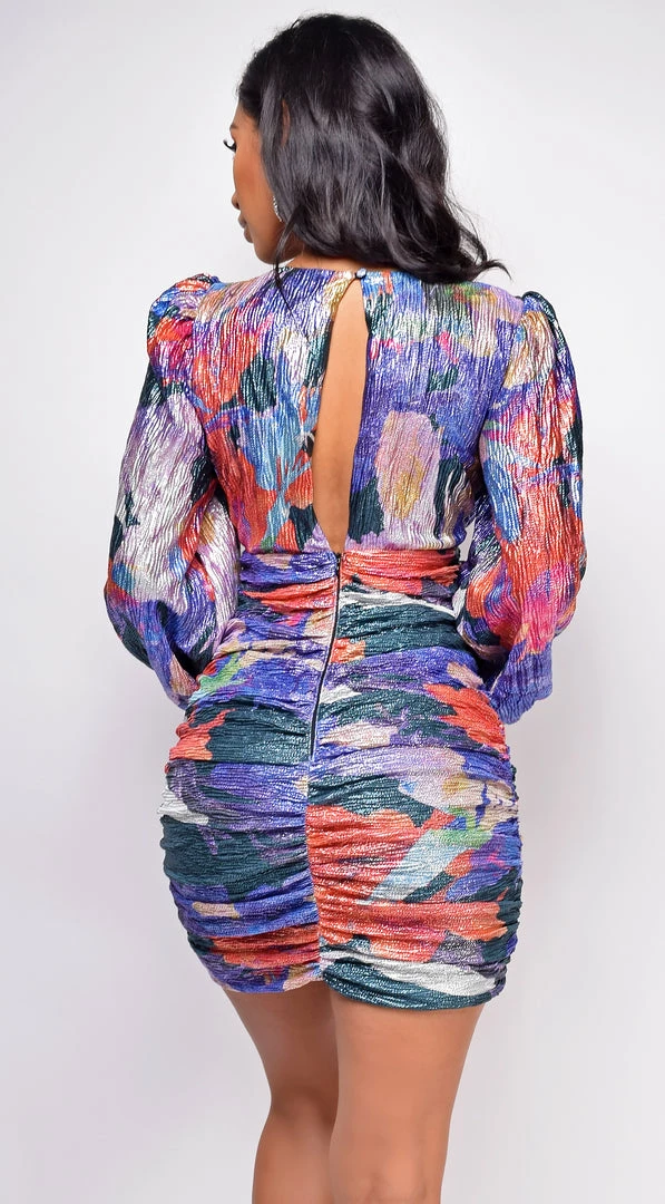 Emprada Halle Purple Multi Color Shimmer Ruched Dress