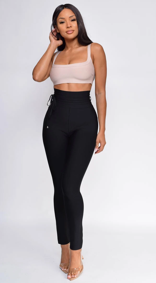 Emprada Hara Black High Waist Belted Bandage Pants Bottoms