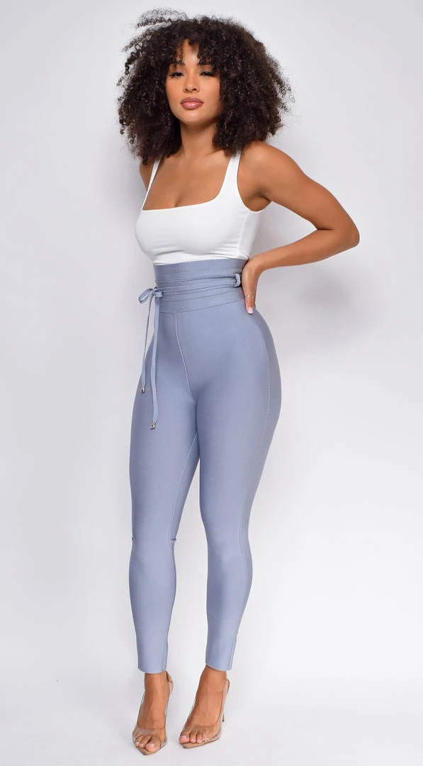 Emprada Hara Blue Grey High Waist Belted Bandage Pants Bottoms