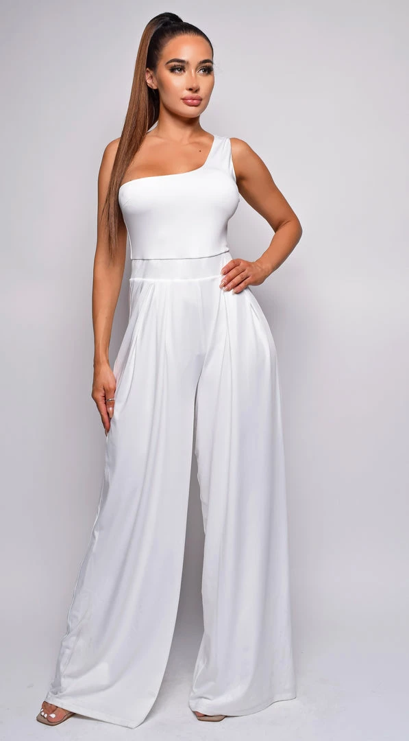 Be the first to review “Emprada Inessa Off White One Shoulder Pleated Jumpsuit” Cancel reply