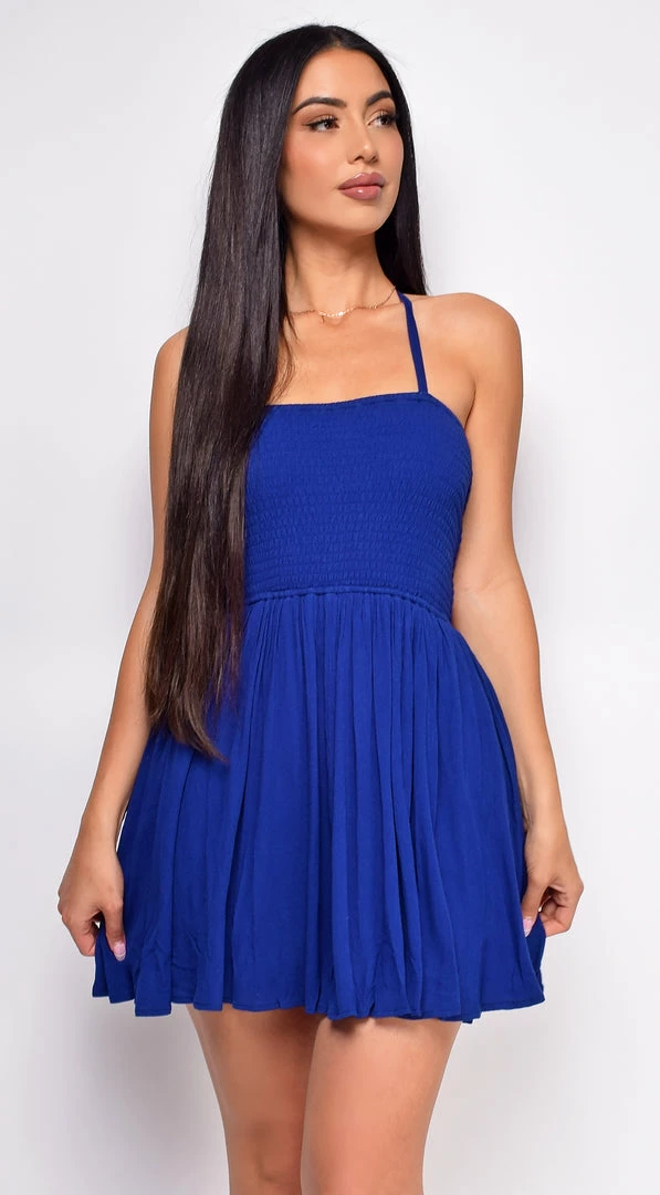 Emprada Infinite Moment Midnight Blue Smocked Top Skater Mini Dress
