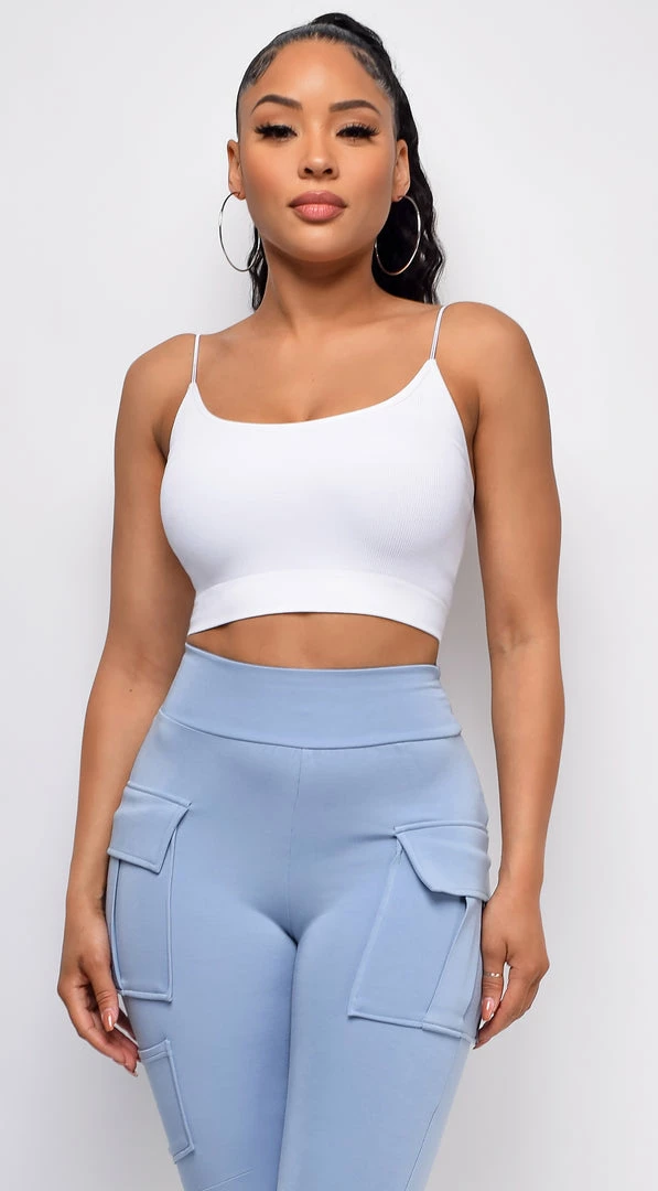 Emprada Jaye White Seamless Spaghetti Strap Ribbed Bottom Brami Tops