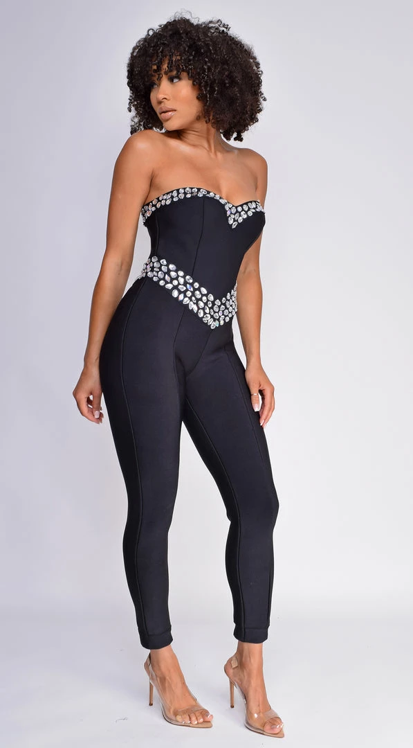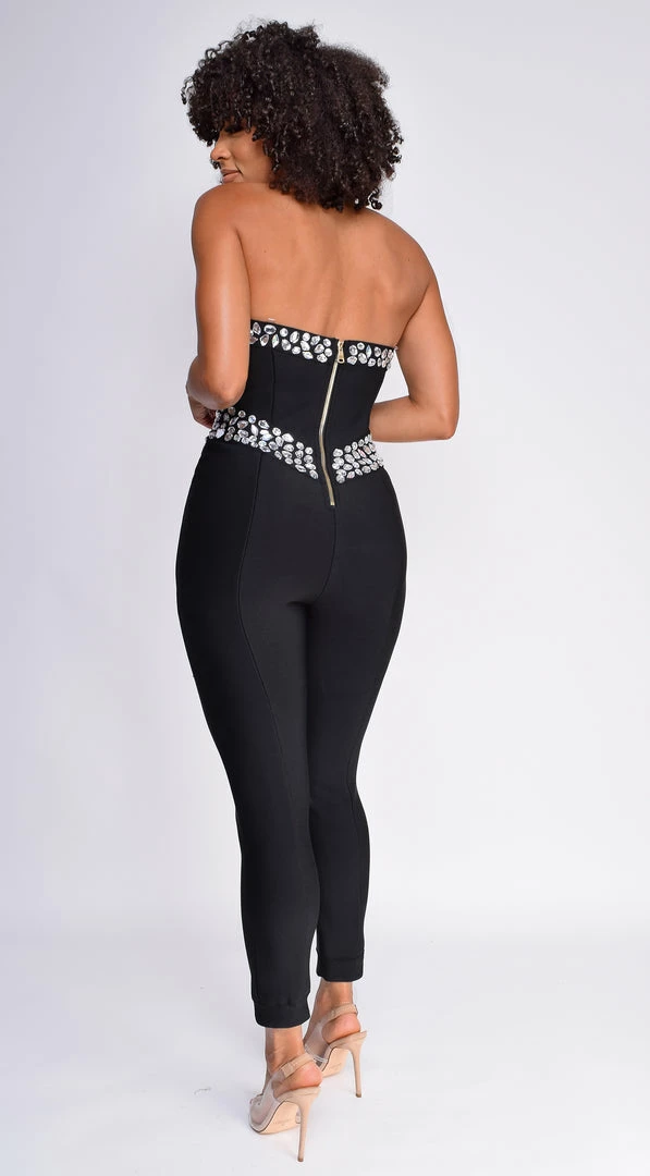 Emprada Jenna Black Embellished Gem Bandage Jumpsuit