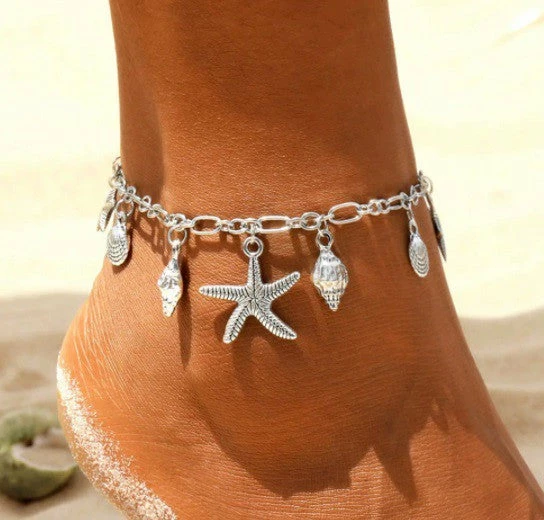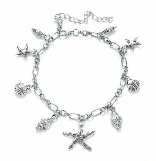 Emprada Jewelry Summer Shell And Starfish Silver Anklet
