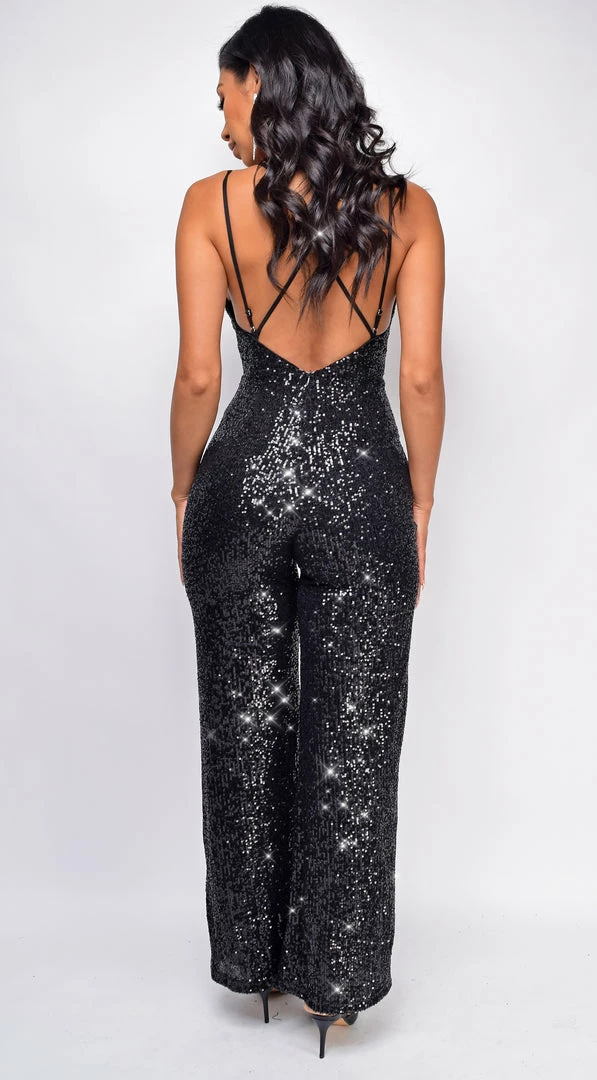 Emprada Jiya Black Sequin Jumpsuit Jumpsuits & Rompers