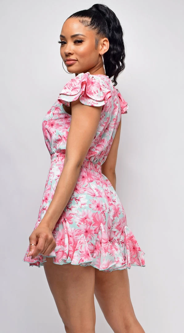 Emprada Jordy Mint Pink Floral Romper Jumpsuits & Rompers