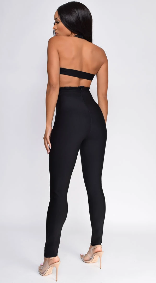 Emprada Jumpsuits & Rompers Charmaine Black Lace Front Bandage Jumpsuit