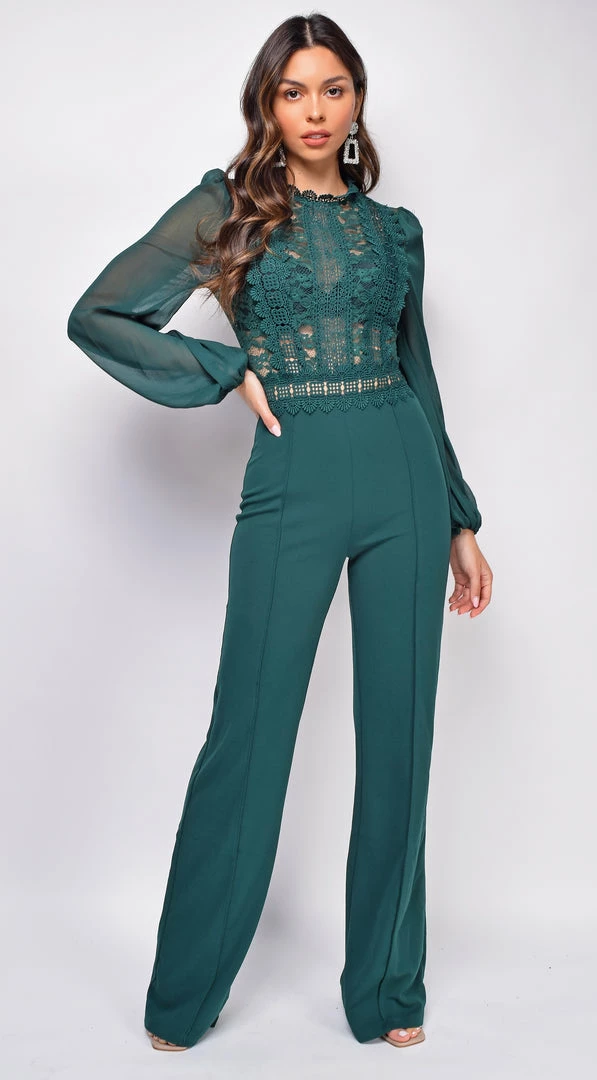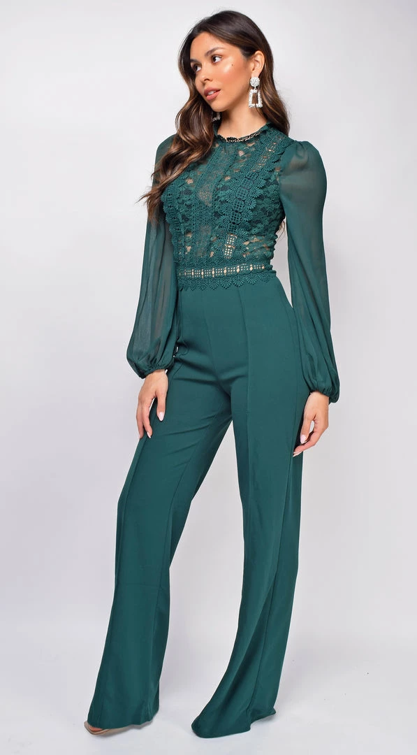 Emprada Jumpsuits & Rompers Skye Green Lace Jumpsuit