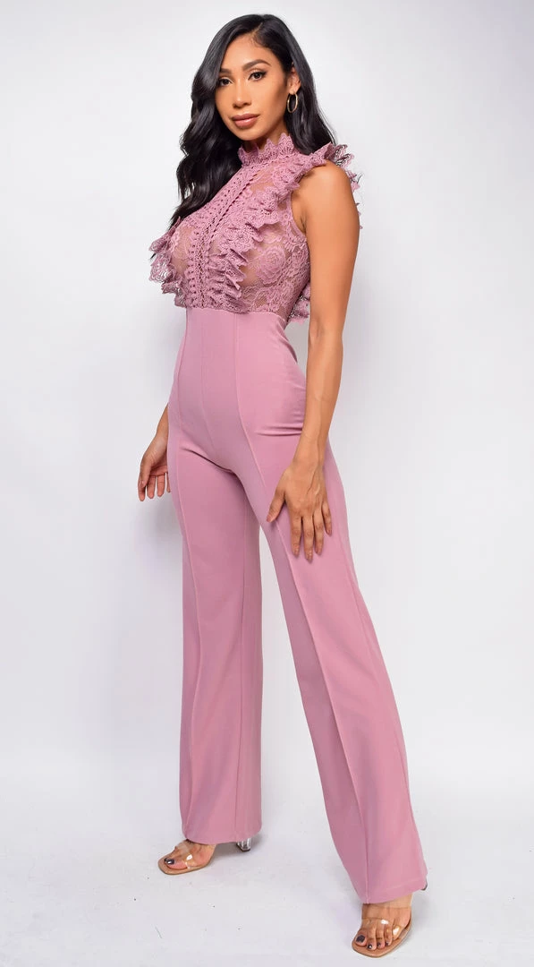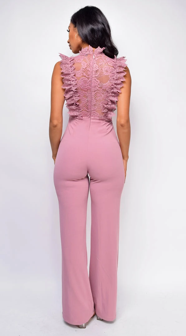 Emprada Jumpsuits & Rompers Vanna Mauve Pink Crochet Flared Leg Jumpsuit