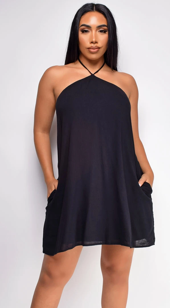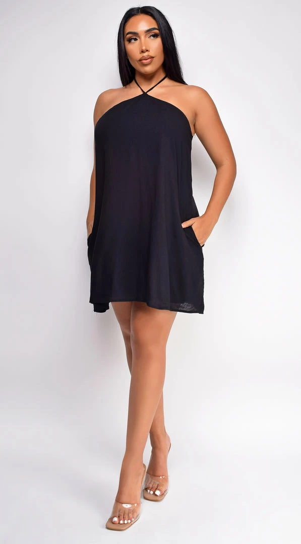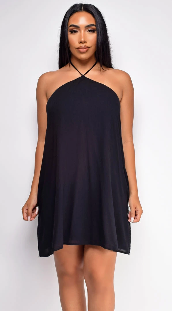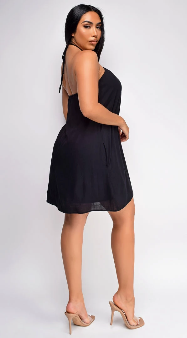 Emprada Kaia Black Halter Flowy Mini Dress