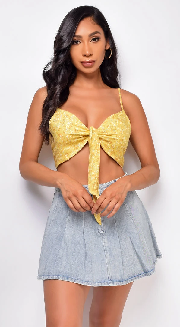 Emprada Kristen Yellow Floral Front Tie Top
