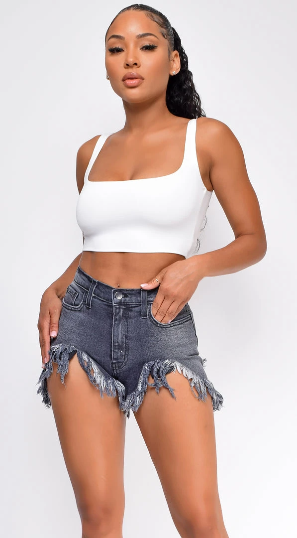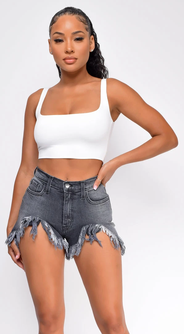 Emprada Layton Stone Grey Shredded High Rise Denim Shorts Bottoms
