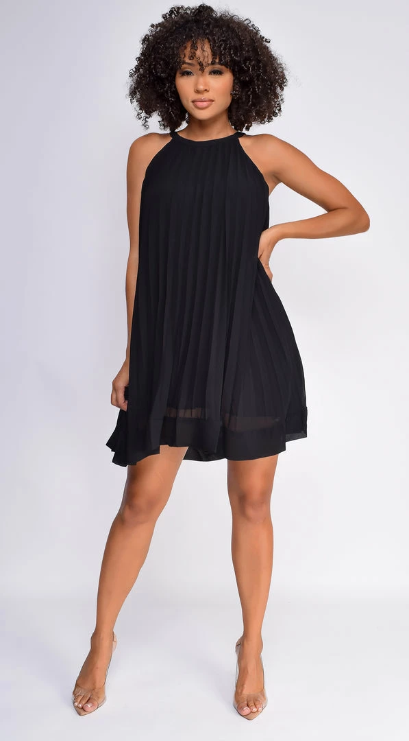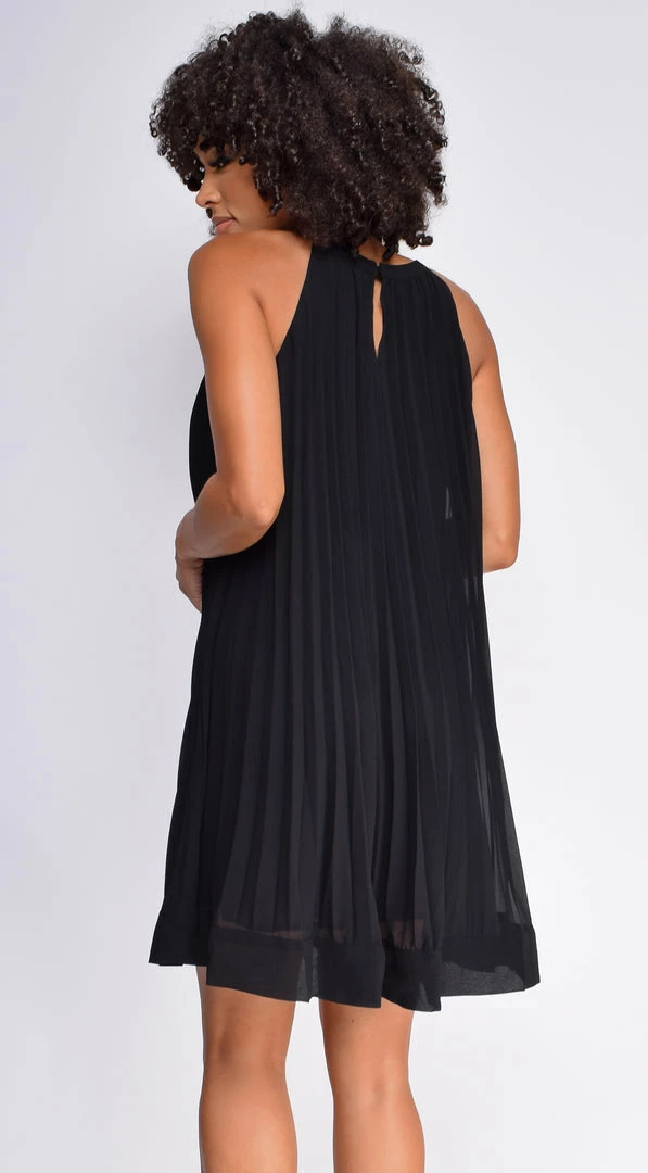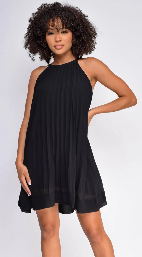 Emprada Lillie Black Pleated Flowy Mini Dress Dresses