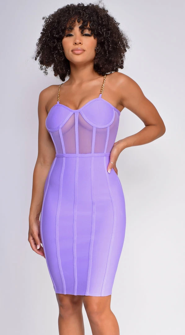 Emprada Lorelei Purple Bandage Bustier Mesh Midi Dress Dresses