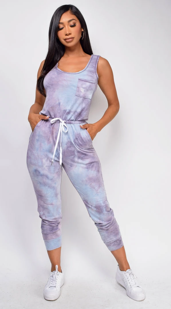Emprada Loungewear Austin Lavender Purple Tie Dye Jumpsuit